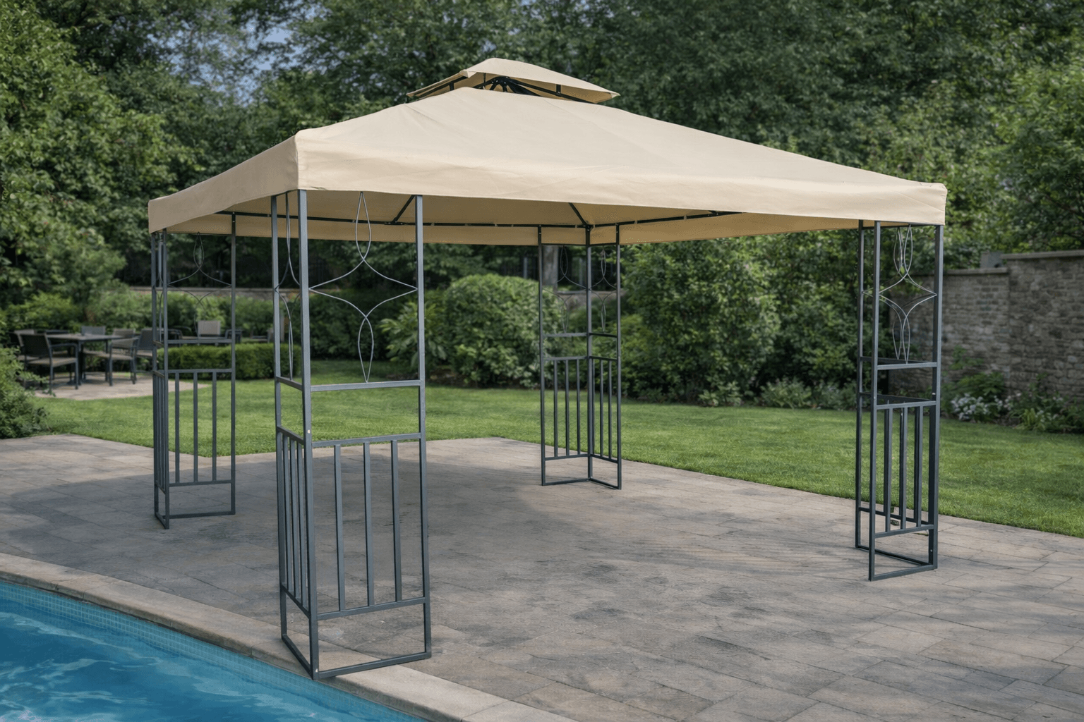 Dimenzije Gazebo tende Gardenia iznose 300x300x270 cm što znači da će te po maloj ceni dobiti vrhunski proizvod koji je veoma elitnog dizajna i koji će na najbolji mogući način popuniti eksterijer odnosno prazan prostor u vašem dvorištu.